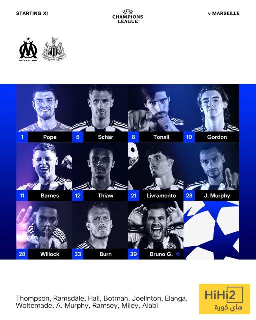 تشكيلة نيوكاسل يونايتد الرسمية ضد مارسيليا في دوري أبطال أوروبا
