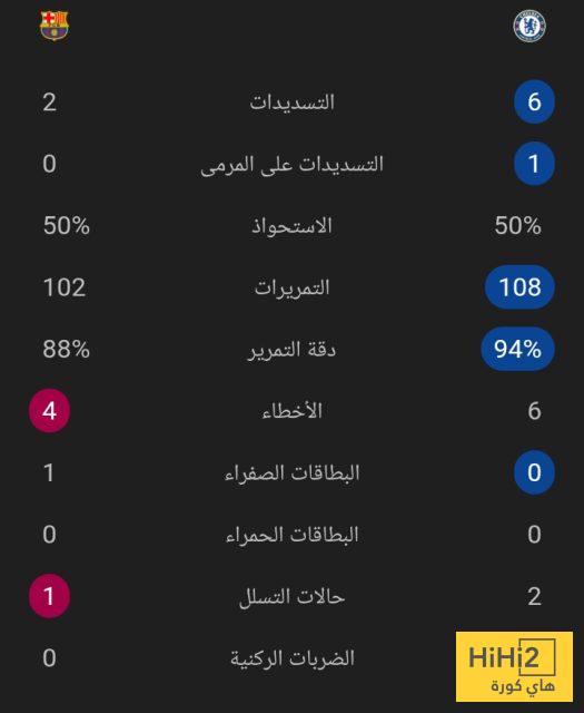 إليكم احصائيات نصف ساعة بين برشلونة و تشيلسي :