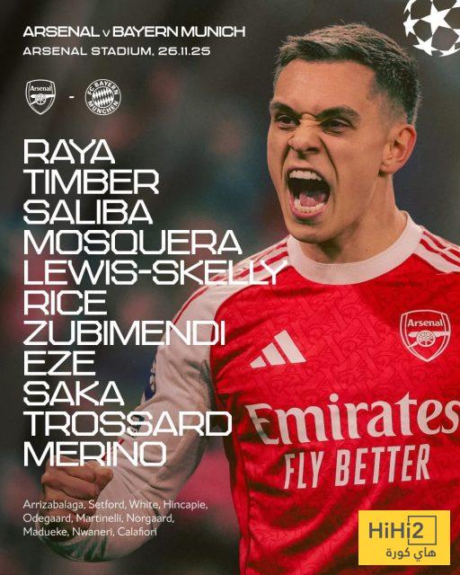 تشكيلة أرسنال الرسمية للقاء بايرن ميونخ :