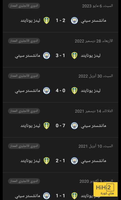 إليكم نتائج أخر 6 مباريات بين مانشستر سيتي و ليدز :