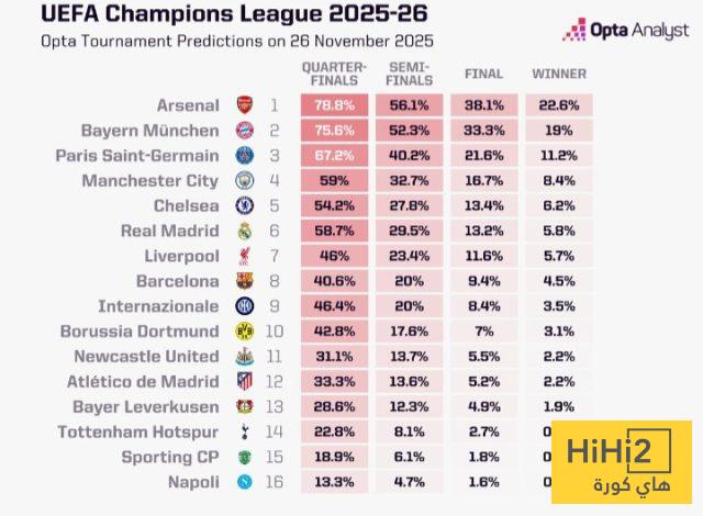 هاي كورة _ كشفت شبكة أوبتا عن هوية الأندية المرشحة للفوز بلقب دوري أبطال أوروبا في الموسم الحالي.