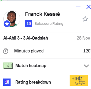 هاي كورة : حصل فرانك كيسيه لاعب النادي الأهلي على تقييم خارج التوقع إذا حصل على أعلى التقييمات الكاملة أمام القادسية على ملعب الأمير عبدالله الفيصل، عقب إنتهاء اللقاء بركلات الجزاء (5-4).