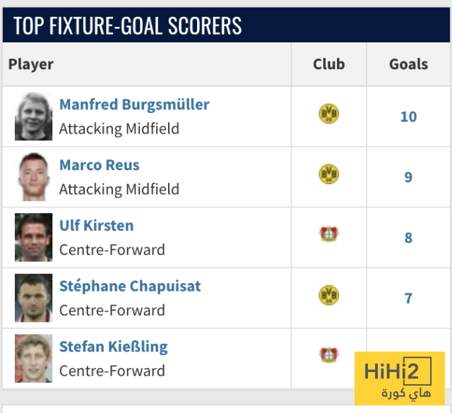 وأكد موقع ترانسفير ماركت أن مانفريد بورغسمولر نجم دورتموند جاء في صدارة الهدافين التاريخيين للقمة خلال لقاءات الدوري الألماني برصيد 10 أهداف .