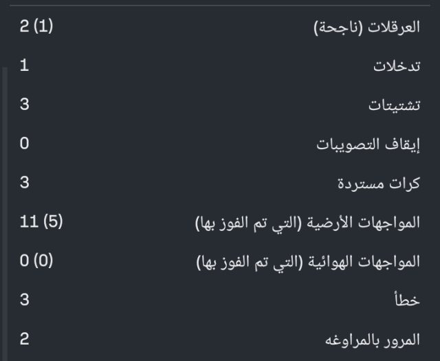 وجاءت إحصائيات كاسادو كالتالي :
