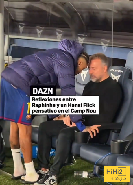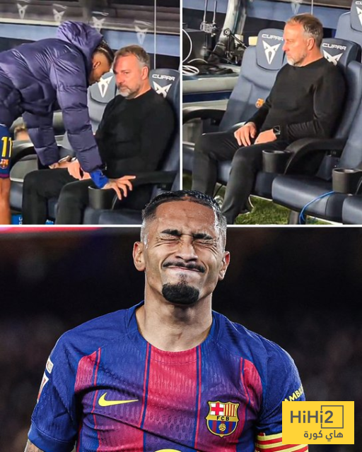 هاي كورة- ظهر هانسي فليك ، مدرب برشلونة ، وهو يجلس على دكة البدلاء بعد انتهاء مباراة البارسا ضد الافيس وكان يبدو عليه ملامح الحزن حتى اقترب رافينيا منه للتحدث معه .