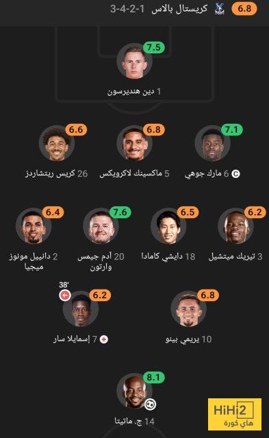 تقييم كريستال بالاس في الشوط الأول أمام مانشستر يونايتد :