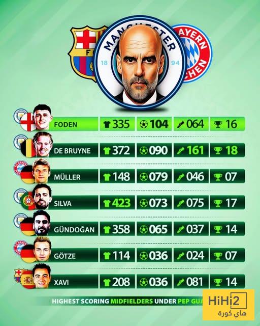 فودن سجل 104 هدفا خلال 335 مباراة لعبها تحت اشراف غوارديولا في مختلف البطولات ليكون لاعب الوسط الوحيد الذي بلغ سقف ال100 هدف.