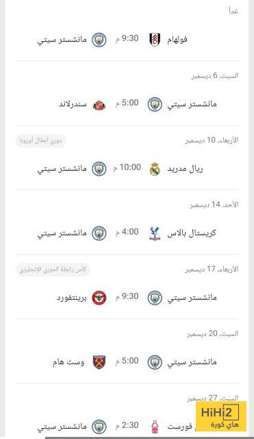 فيما يلي جدول مباريات السيتي خلال شهر ديسمبر :