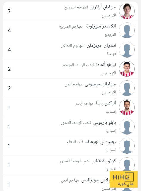 وجاءت قائمة هدافي أتلتيكو مدريد في الليغا كالتالي :