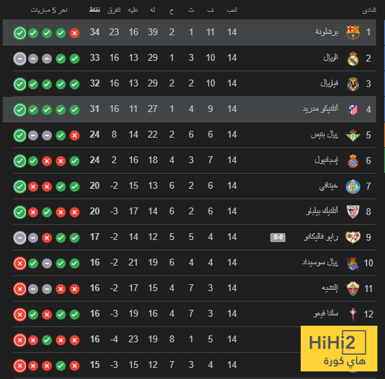 برشلونة في صدارة الليغا برصيد 34 نقطة