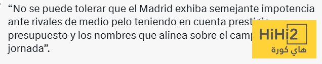 من غير المقبول أن يظهر ريال مدريد مثل هذا العجز أمام منافسين متوسطي المستوى ، بالنظر إلى مكانته وميزانيته والأسماء التي يشركها في الملعب كل مباراة .