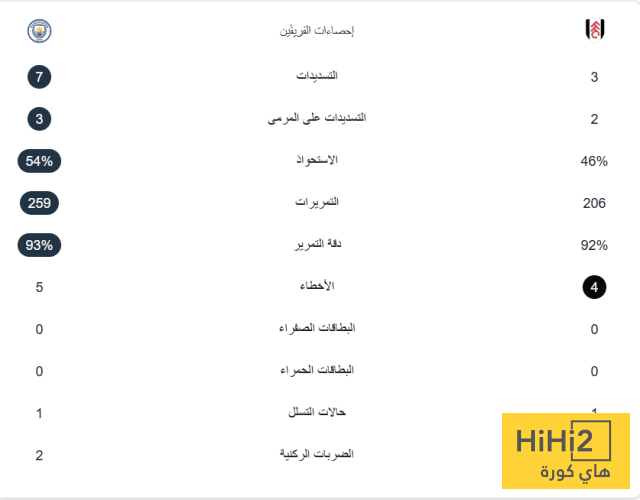 احصائيات الشوط الاول من مباراة مانشستر سيتي و فولهام