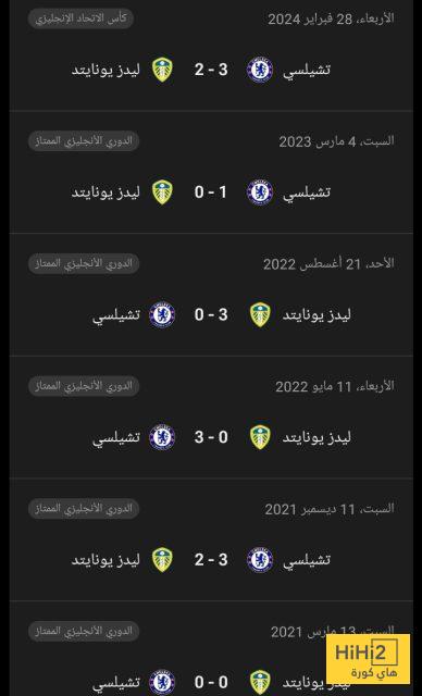 نتائج أخر 6 مباريات جمعت تشيلسي و ليدز يونايتد