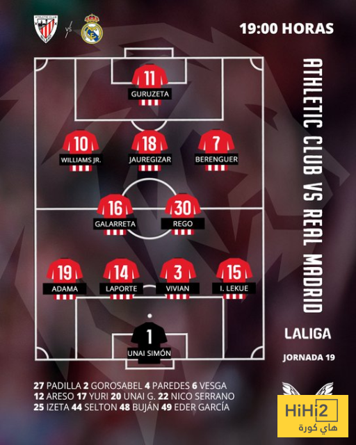 تشكيلة بلباو الرسمية للقاء ريال مدريد