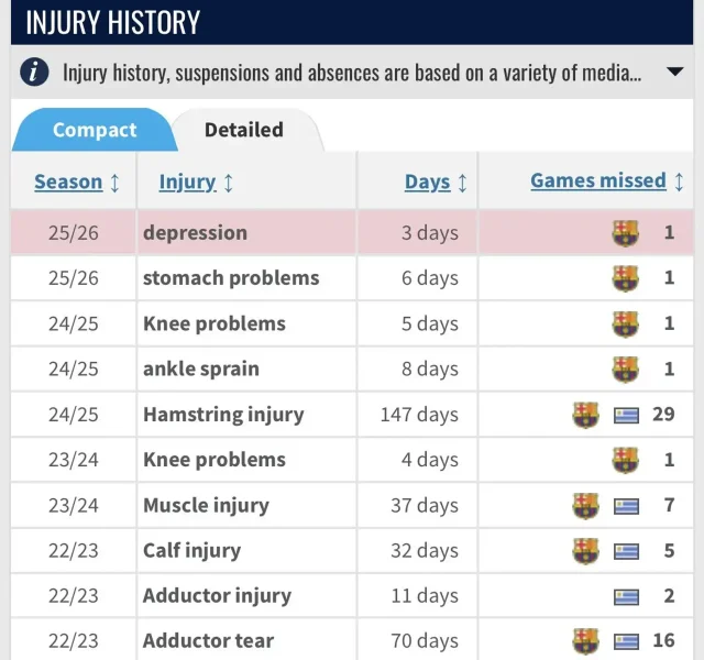 وبعد ذلك ابتعد المدافع الأوروغواياني عن التدريبات، ومنحه النادي إجازة مفتوحة للتركيز على صحته العقلية، حتى أن موقع “ترانسفير ماركت” أدرج حالته على أنها اكتئاب ، مما أثار دهشة العديد من المشجعين.