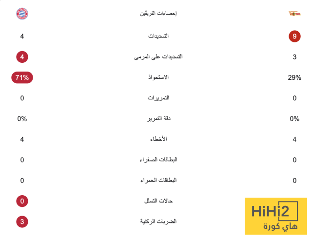 وجاء تقدم العملاق البافاري بالنتيجة بعد أن سيطر على مجريات اللقاء كما تشير إحصائيات الشوط الأول .