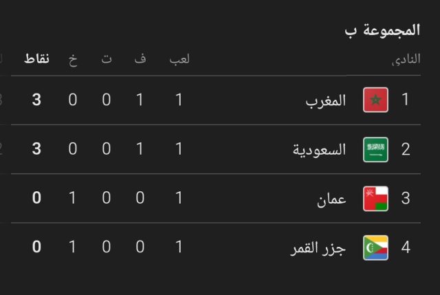المنتخب السعودي بالعلامة الكاملة ( 3 نقاط ) ، سجل هدفين واستقبلت شباكه هدفًا واحدًا .