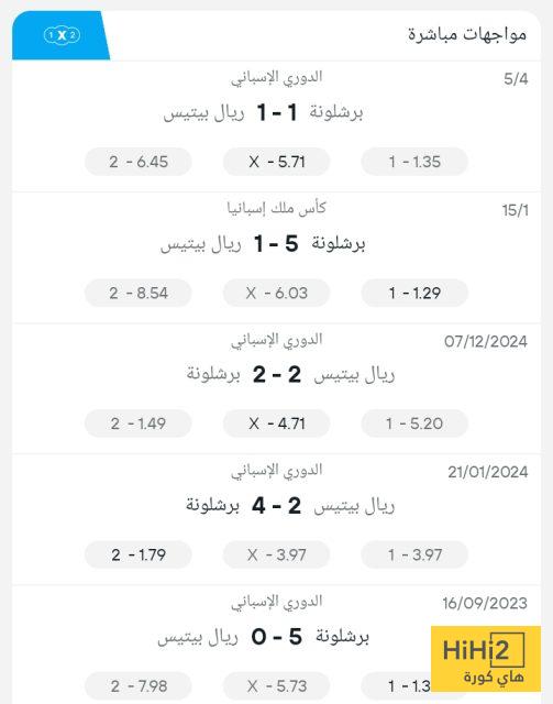 نتائج آخر خمس مباريات بين برشلونة وريال بيتيس
