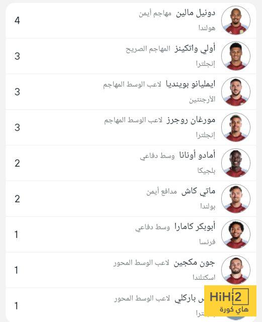 وجاءت قائمة هدافي أستون فيلا كالتالي :