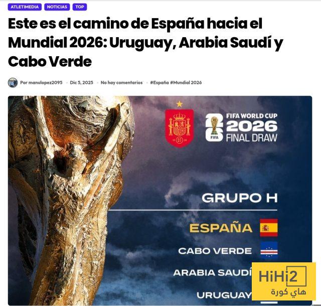 هاي كورة – اهتمت الصحف الإسبانية بالحديث عن المنتخب السعودي الأول لكرة القدم حيث تناولت إمكاناته وقدرته على منافسة كبار العالم ، بعدما أسفرت قرعة مونديال 2026 عن وقوعه في المجموعة الثامنة رفقة إسبانيا ، أوروغواي ، والرأس الأخضر .