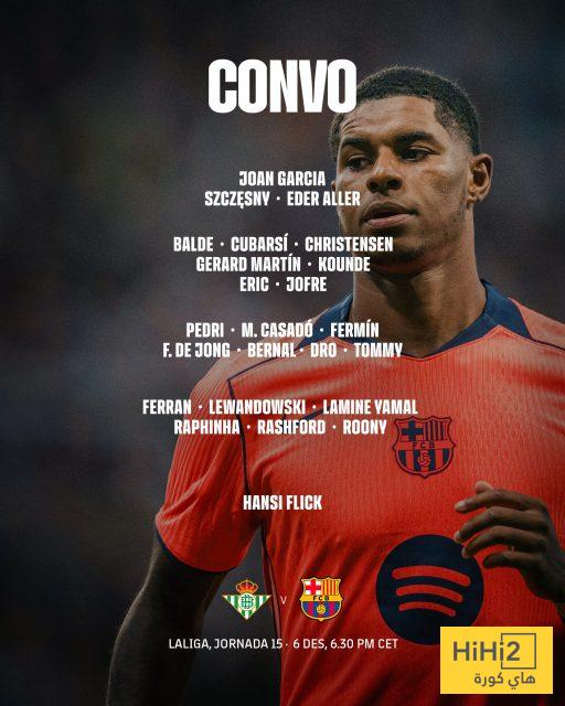 هاي كورة – أعلن هانز فليك مدرب برشلونة عن قائمة فريقه الرسمية لمواجهة ريال بيتيس ، اليوم السبت ، ضمن منافسات الجولة الخامسة عشرة بطولة الدوري الإسباني .