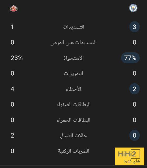 احصائيات 20 دقيقة بين مانشستر سيتي و سندرلاند :