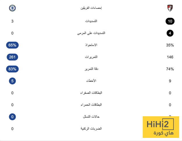 وشهدت المباراة تفوق من جانب بورنموث على البلوز ، حيث كانت محاولاتهم على المرمى أكثر من ضيفهم .