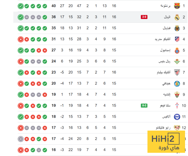اليكم ترتيب الليغا :