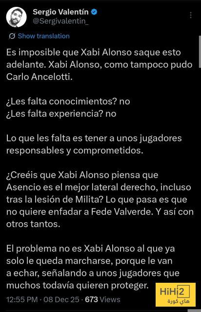 وينطبق الأمر نفسه على كثيرين غيره. المشكلة ليست في تشابي ألونسو، الذي لا يملك خيارًا سوى الرحيل لأنه سيُقال، مُشيرًا بأصابع الاتهام إلى لاعبين لا يزال الكثيرون يُريدون حمايتهم “.
