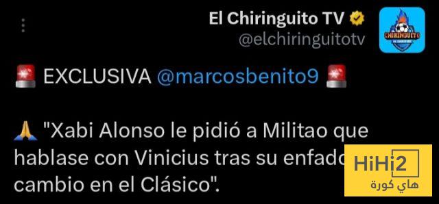 “تشابي ألونسو طلب من ميليتاو التحدث إلى فينيسيوس، بعد غضب الأخير من استبداله في الكلاسيكو”.