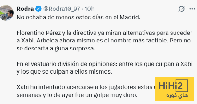 ” يبحث فلورنتينو بيريز ومجلس الإدارة بالفعل عن بدائل لخلافة تشابي . أربيلوا هو المرشح الأوفر حظًا حاليًا . لكن المفاجأة ليست مستبعدة .