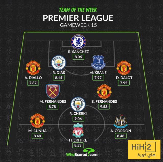 هاي كورة – كشفت شبكة هوسكورد عن التشكيلة المثالية للجولة الخامسة عشرة من بطولة الدوري الإنجليزي الممتاز والتي شهدت سيطرة من لاعبي مانشستر يونايتد .