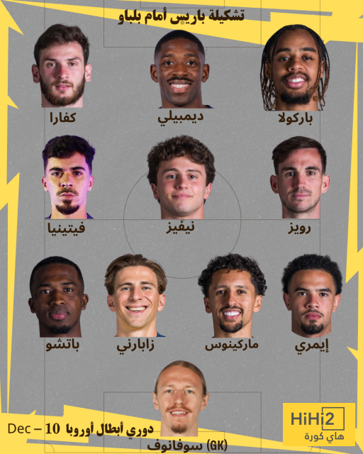 تشكيلة باريس سان جيرمان المتوقعة :