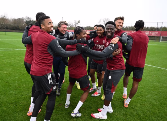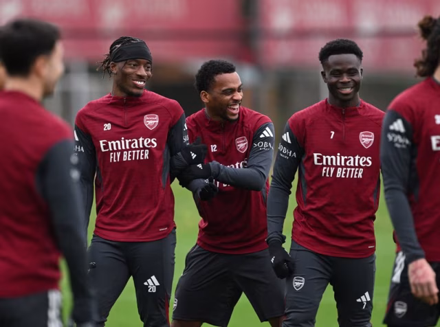وتظهر الصور التي نشرها الموقع الرسمي للجانرز أجواء إيجابية وسعيدة في مران الفريق .