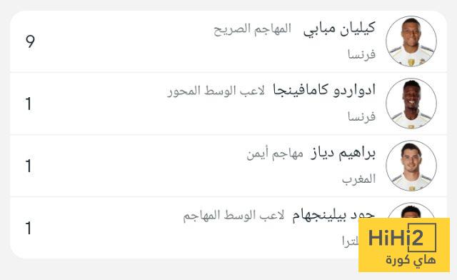 وجاءت قائمة هدافي الريال كالتالي :