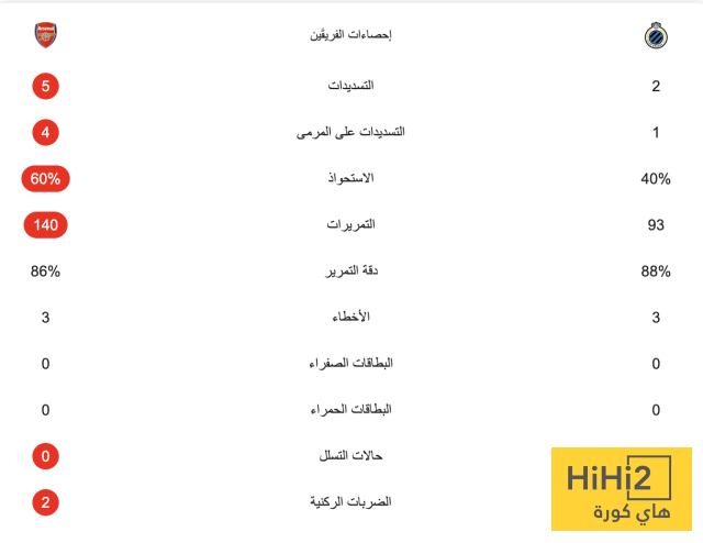 هاي كورة – مرت حتى الآن نصف ساعة من مباراة أرسنال وكلوب بروج والتي تقام في الجولة السادسة من مرحلة الدوري في دوري أبطال أوروبا .