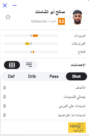 هاي كورة :حصل صالح أبو الشامات لاعب المنتخب السعودي على تقييم سيئ أمام فلسطين، حيث فقد الكرة في مواقف حاسمة وأربك إيقاع الفريق في أكثر من لقطة.