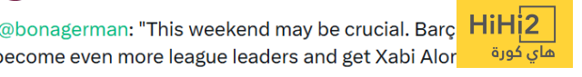 قد تكون نهاية هذا الأسبوع حاسمة . بإمكان برشلونة أن يعزز موقعه أكثر في صدارة الدوري وأن يُطيح بتشابي ألونسو من تدريب ريال مدريد ” .
