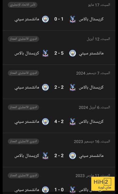 نتائج أخر 6 مباريات جمعت مانشستر سيتي و كريستال بالاس على النحو التالي: