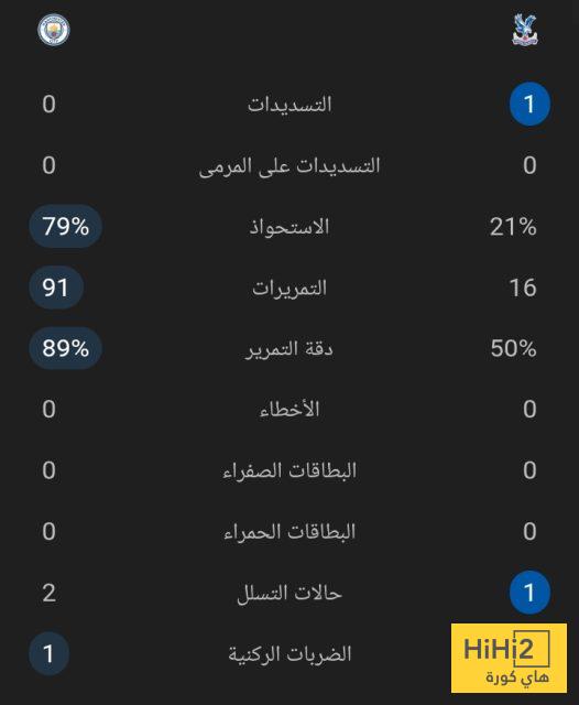 إليكم إحصائيات أول 10 دقائق بين مانشستر سيتي و كريستال بالاس: