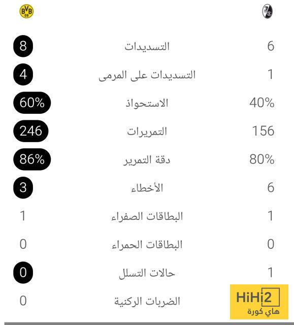 إحصائيات الشوط الأول: