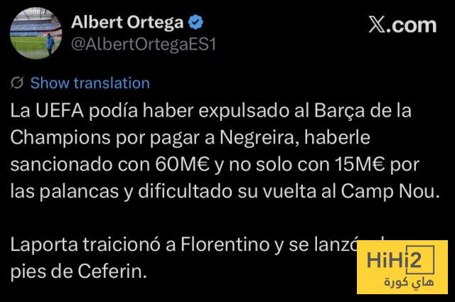 “اليويفا كان بإمكانه طرد برشلونة من دوري أبطال أوروبا بسبب دفعه مبالغ مالية لنيغريرا ، وكذلك معاقبته بـ 60 مليون يورو وليس 15 مليون يورو بسبب قضية الرافعات و كذلك تعقيد عودته إلى كامب نو ، ولكن لابورتا خان فلورنتينو بيريز وارتمى في حضن تشيفرين.”
