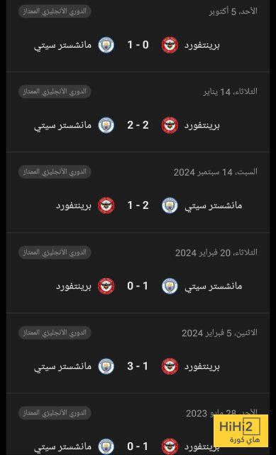 إليكم نتائج أخر 6 مباريات جمعت مانشستر سيتي و برينتفورد: