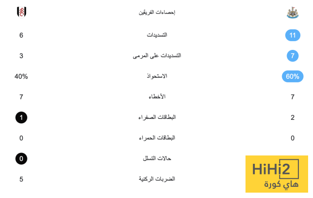 وجاءت إحصائيات اللقاء لتؤكد أحقية نيوكاسل بتحقيق الفوز بعد أن سيطر على المباراة سواء بمحاولاته على المرمى أو بالاستحواذ على الكرة.