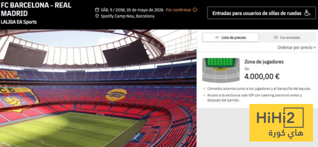 هاي كورة- طرح نادي برشلونة تذاكر كبار الشخصيات لمباراة الكلاسيكو ضد ريال مدريد على ملعب الكامب نو بسعر 4000 يورو .