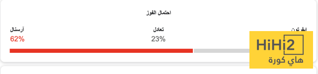 نسبة فوز أرسنال 62%، ونسبة فوز إيفرتون 15%، ونسبة التعادل 23%.