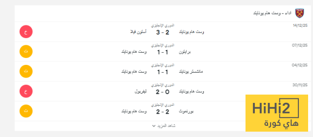 فيما يلي نتائج وست هام في أخر 5 مباريات قبل ملاقاة السيتي:-