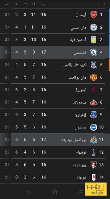 إليكم ترتيب الدوري الانجليزي بعد تعادل تشيلسي و نيوكاسل :