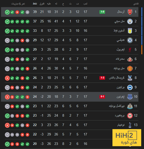 ترتيب الدوري الانجليزي الممتاز الآن: