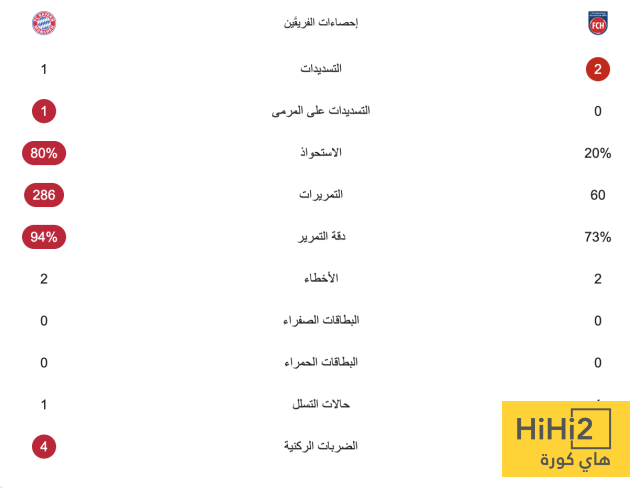 إحصائيات نصف ساعة من مباراة بايرن ميونخ وهايدينهايم
